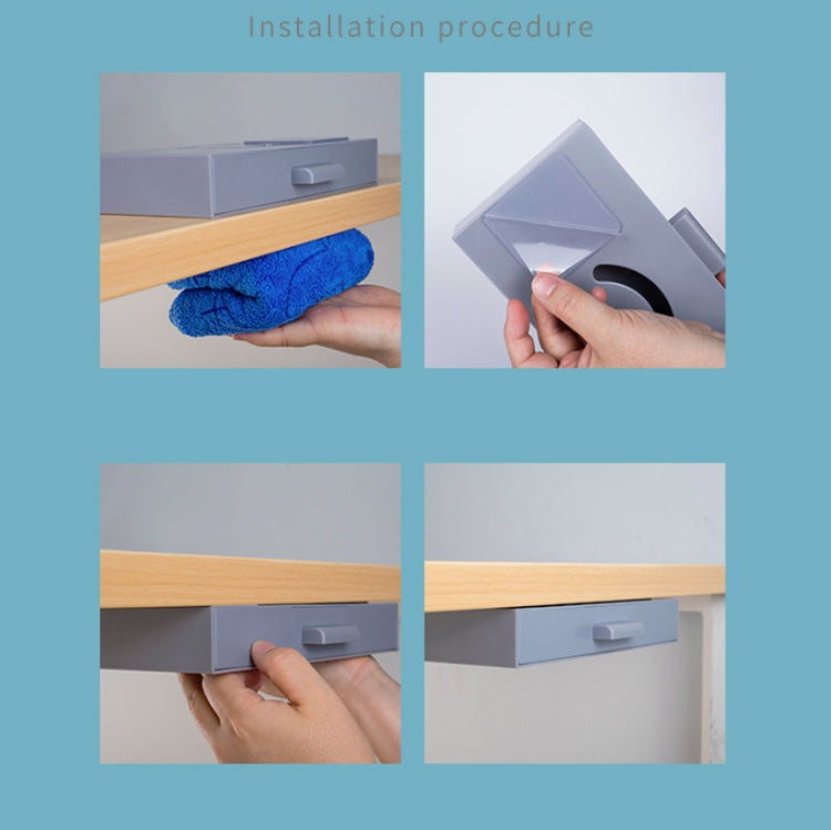 Hidden Drawer Storage Box Office Desk Bottom Paste Large Capacity Pen Case, Dark Blue, Light Blue, Pink, Gray
